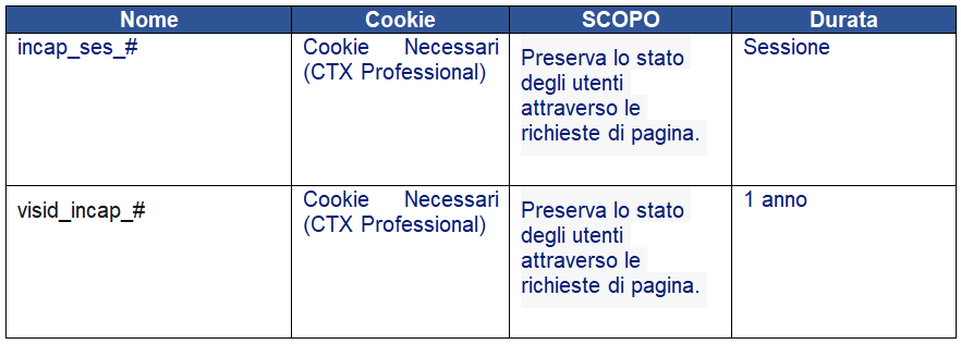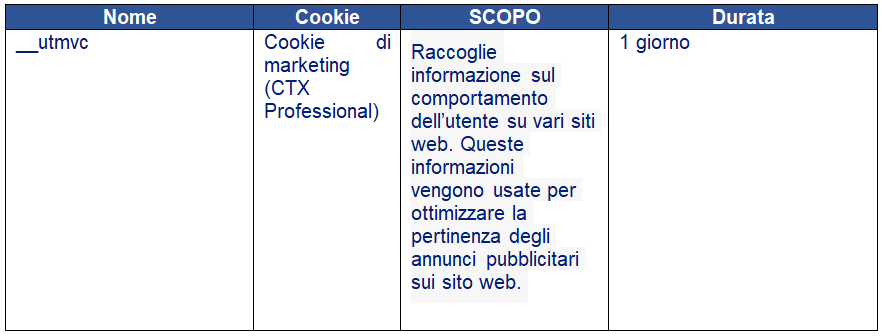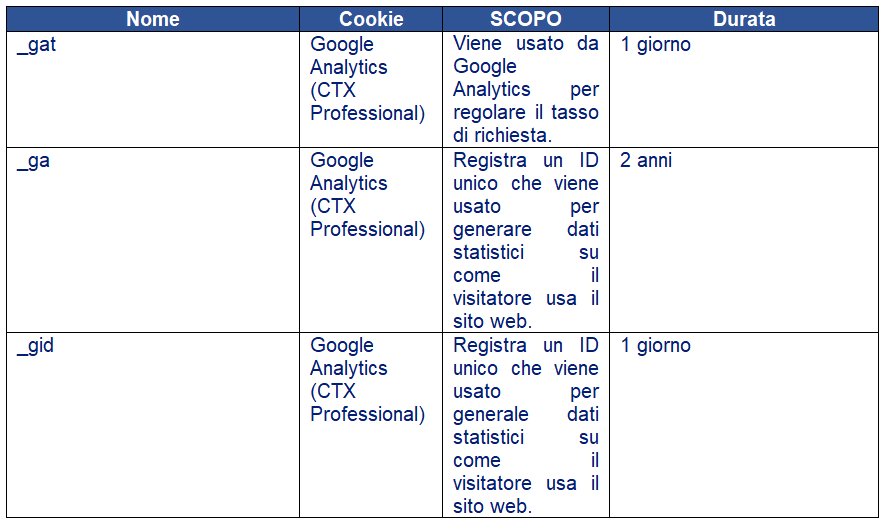 Maggiori informazioni riguardo i cookies usati nel sito web sono fornite di seguito.